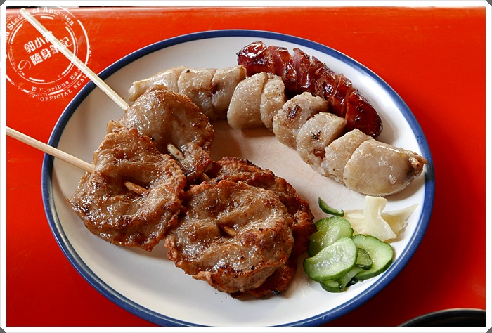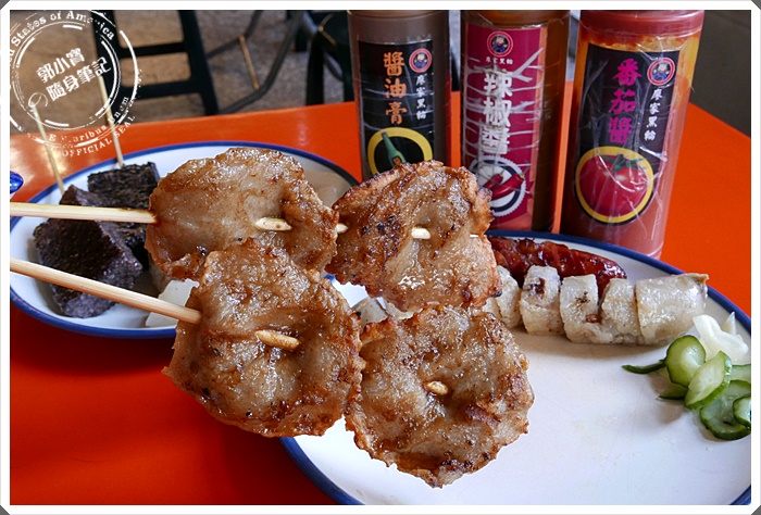 | 點了一份大腸加香腸,店家旁邊還附了少許的黃瓜,烤黑輪有分為胡椒口味還有麻辣的口味,點餐時都會特別問你,只是覺得廖家黑輪是不是還費工夫擺盤阿?意外覺得擺得很美阿^^ |