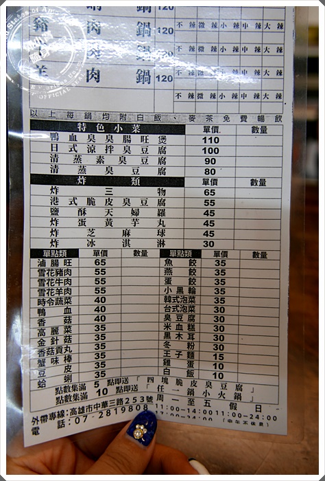 盧記臭豆腐王 地址: 807高雄市三民區中華三路253號 電話:07 281 9808 營業時間:11:00–14:00, 17:00–01:00