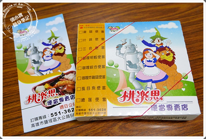 | 桃樂絲便當的便當盒就跟外牆上的圖案一樣,DM也一致的用上了圖案。 |