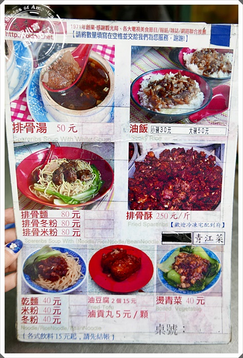 | 這邊是採寫單子的方式,排骨酥可以單買也可以宅配唷~老李排骨酥的招牌就是排骨酥湯加上油飯是他的特點,其他也有麵食可以點。 |