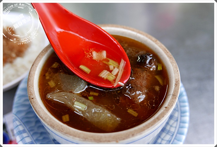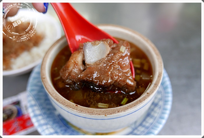 | 首先是排骨酥湯,一碗50真的是價格不菲,上頭略浮了一層油,但湯底清澈,喝的時候要小心燙,有浮油的湯品依寶妹的經驗都是燙口到會容易忘懷XD |