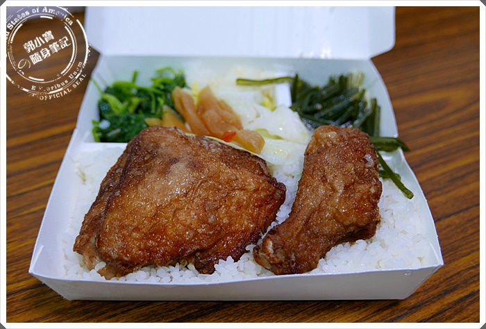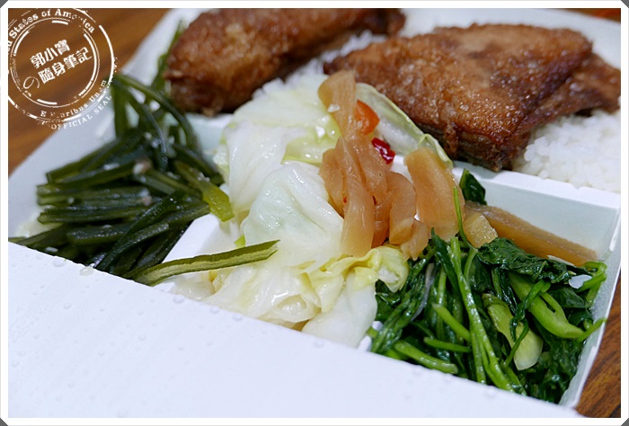 | 每個便當都是固定三個菜色也沒得選,不過巴洲排骨的便當菜是熱騰騰的,也就是說他夾完了配菜就會立刻現炒另一道出來,這樣大家都可以吃到最新鮮的菜色唷,就連肉食也是現點現炸的,保證你吃到的肉都是香酥脆阿! |