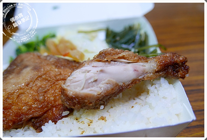 | 就連網路上大家都是超級推薦他們家的炸雞腿便當,今天當然就選擇了炸雞腿,雖然價格是屬於偏高的,但是打開便當蓋一看就發現竟然是隻超級大雞腿,整個突然備感欣慰阿~巴洲排骨的排骨是屬於里肌不裹粉式的,就看大家是不是也愛吃這種不沾粉的排骨了~~ |