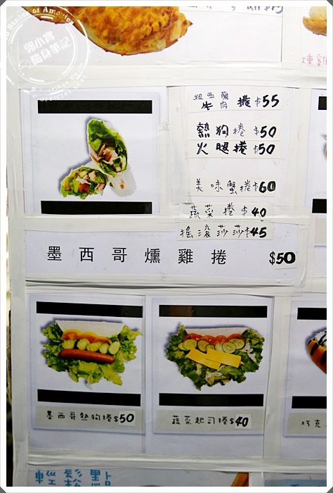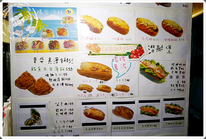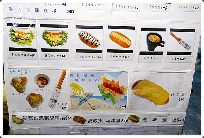 | 販賣的東西種類多到眼花撩亂,今天決定要拍鼎軫堡發現阿姨剛好換了新的MENU,種類之多寶妹一一來點小介紹!東西會分成熱狗堡系列、陽光沙拉、焗烤薯泥堡系列、夏威夷薄餅、還有蔬菜捲,這邊東西多到有不少東西都是素食者也可以食用唷! |