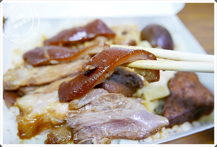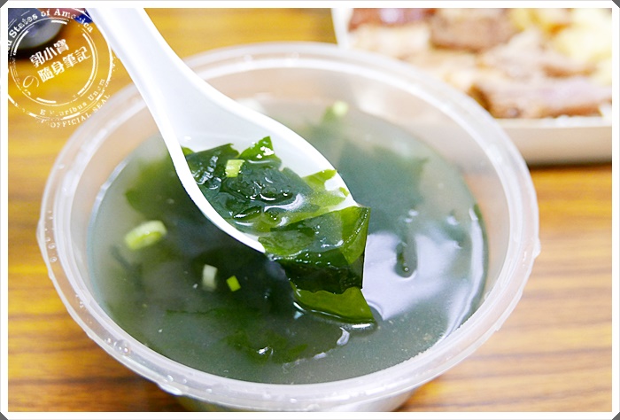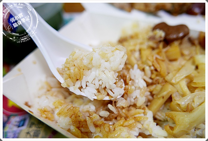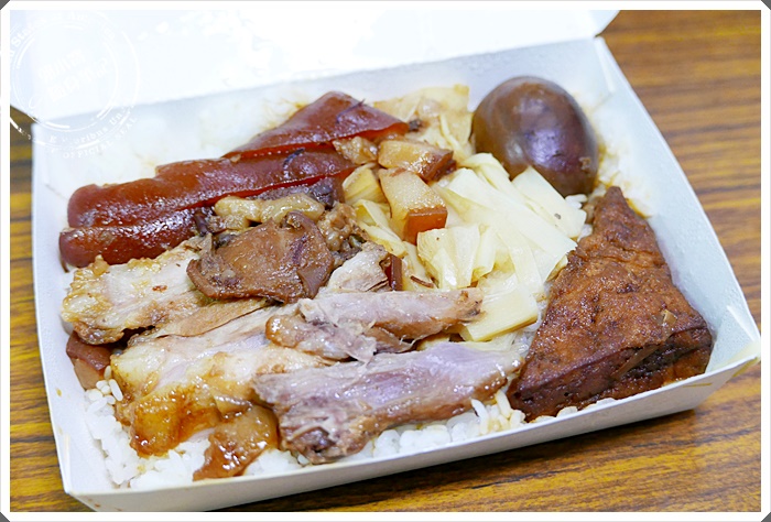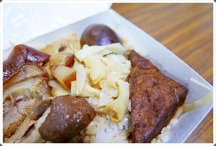 | 便當的內容就是已經包含了筍絲、油豆腐以及滷蛋。筍絲我滿推薦的,屬於爽口的類型不油膩而且非常有脆度,油豆腐則是紮實,滷蛋滷的也很透徹唷。 |