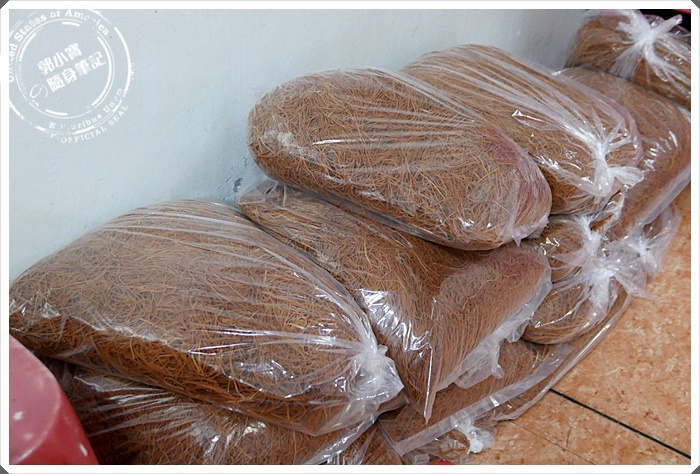 | 後場地板還堆了一袋一袋的紅麵線,看起來真是壯觀啊,看這數量就知道武廟路麵線羹的生意真的是好的不得了@@ |