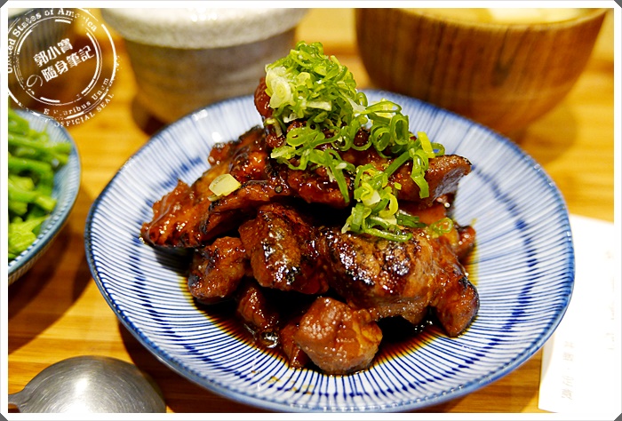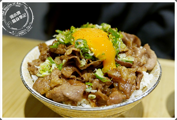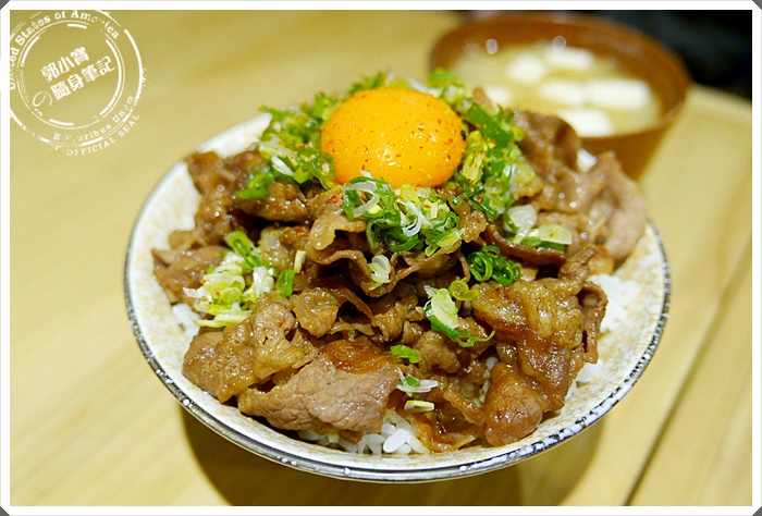 | 姊妹搶著點走我也想吃的霜降牛丼,光是照片看起來就好好吃,太誘人了吧~滿溢的蔥花上面蓋了顆半月,再撒上些許七味粉整個爆炸享受,裏頭的醬汁也相當多,不用擔心裏頭的白飯會太乾,整體分量並不算大,不過吃得飽不如吃得巧,才是吃日式料理的精隨啊。 |