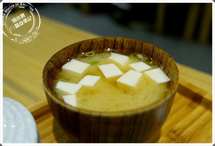 | 每一份飯時都有附上一碗味增湯,裏頭的豆腐滿滿的,湯底稍稍略鹹,但他是好喝的。 |