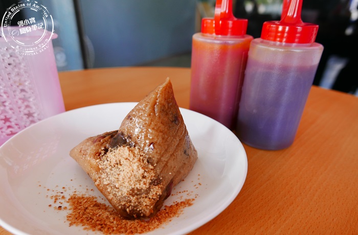 南部民眾較喜愛肉粽沾上的甜醬及花生粉,迷人的香氣緩緩散發出來,一口接著一口停不了的好滋味,傳統肉粽果然不簡單呀! |