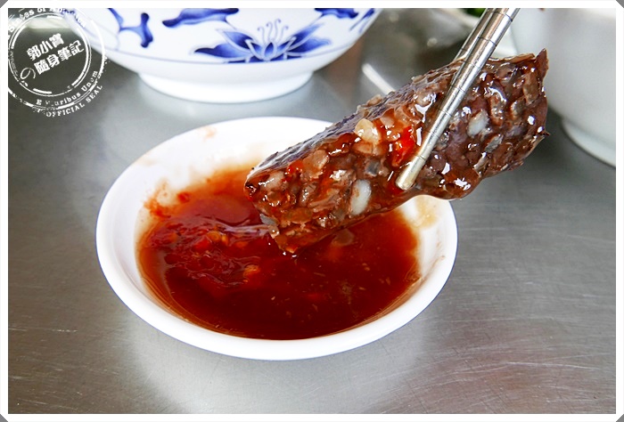 | 每次都一定要點鴨血加上他們的醬料,醬油膏甜甜鹹鹹的真的夠味,在加上一些豆瓣醬,搭配大家也都超愛的鴨血,這鴨血每次我一個人都可以吃光光一份,帶有一點口感,但卻煮的透心綿密~ |