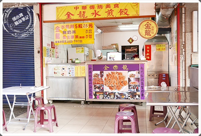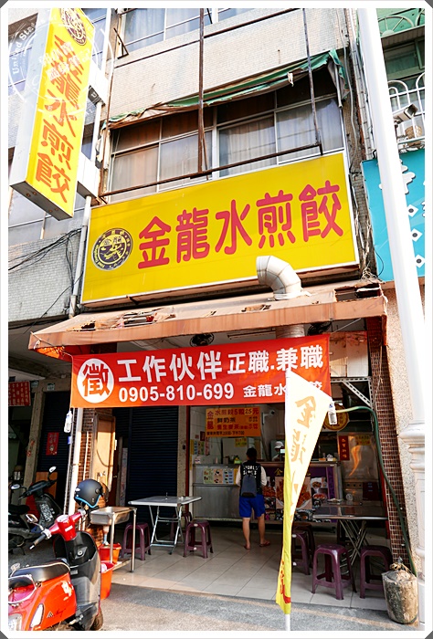| 金龍水煎餃的店面風格讓人較有年輕的感覺,相當搶眼的配色,在路上也很容易認出來,吃過金鳳之後的寶妹,也是很想要來吃吃看金龍的。相傳之前的4顆十元的價錢,也才不過隔了兩年之後價格翻倍漲~物價回不去,唯有薪資低(拭淚) |
