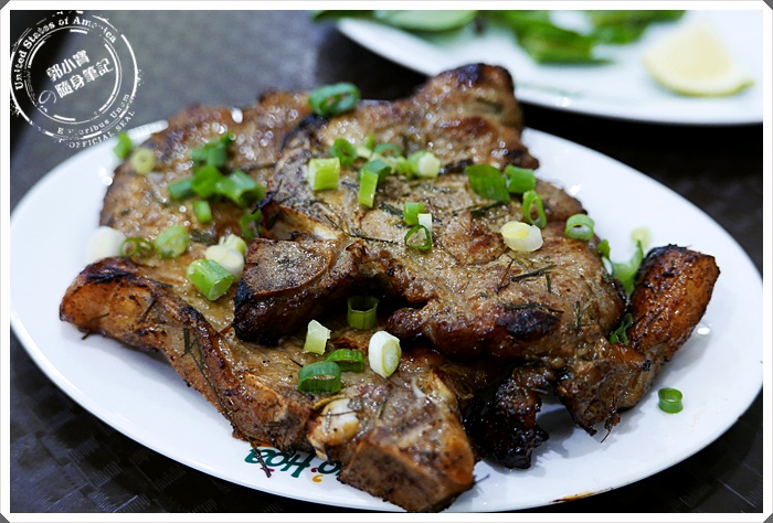 | 整個把CP值超高的烤豬排放在後面,朋友根本隨機換點來吃,沒想到挖到寶,兩大塊超厚的豬排,上頭還撒上香草以及醬料下去香烤,超紮實的豬排兩片竟然只要80元,這根本在百貨美食街當中是超級划算阿!! |