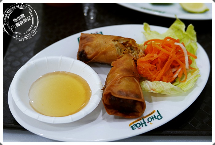| 先介紹套餐的炸春捲超級好吃,外頭的炸春捲皮超級酥,而且不會過油,裡頭用料有肉末以及蔬菜紅蘿蔔等等.....沾上一點點旁邊的醬,整個很驚艷阿! |