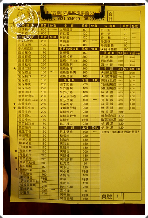 | 菜單熱炒的種類一大長串阿~種類多到你不要不要的!熱炒價位寶妹覺得相當平價,還有拜託現在沒有流行百元熱炒,一分錢一分貨可以嗎??桶仔雞是每份600,另外也有白斬雞是650元!其他青菜以及海鮮則是要到前面去選購。 |