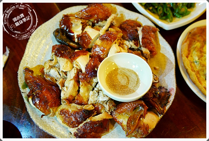 旁邊還有一碗雞內臟以及雞油,等回過神來已經被吃了,整份的桶仔雞其實很快就上桌了,網路上是說需要一小時前預訂一下,這寶妹一群人六個是一來就咻咻咻的點完開吃,如果人多還是要電話預訂一下喔!這樣一份其實價位差不多,外皮也燒烤的色澤很美,上桌之香果然是木炭燒得最讚。 |