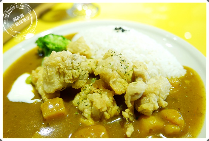 | 旺福雞丁咖哩,裹粉酥炸雞肉丁搭配自製酸奶與咖哩共舞,雞肉丁處理得不錯但還是有過鹹的問題,寶妹認為就咖哩專賣這點,店家似乎仍有很長的一段路要走。 |