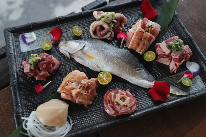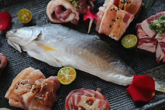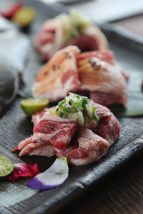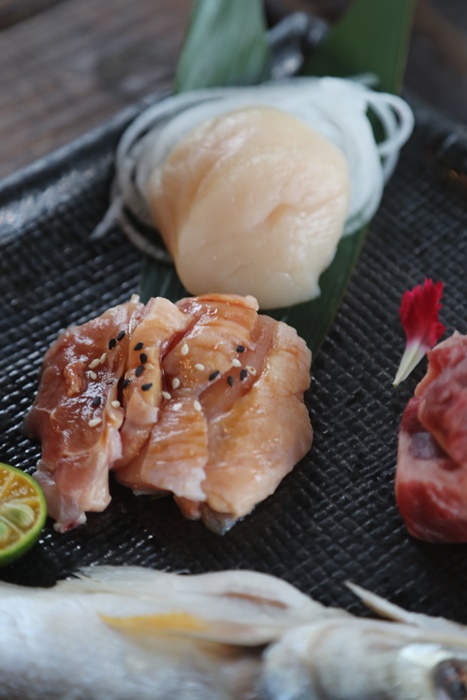 | 其實燒肉套餐還有湯品跟小菜我沒有拍到,肉的份量跟品質都還滿不錯的,除了午仔魚一夜干以外還有可生食的大干貝,從牛肉到豬肉還有雞肉等肉品都是出自宜蘭的特產,一次滿足啊! |