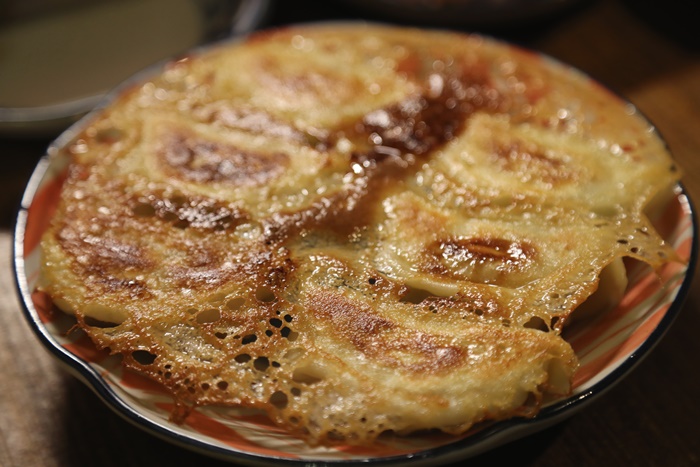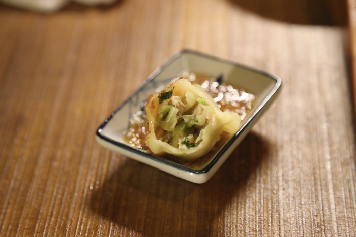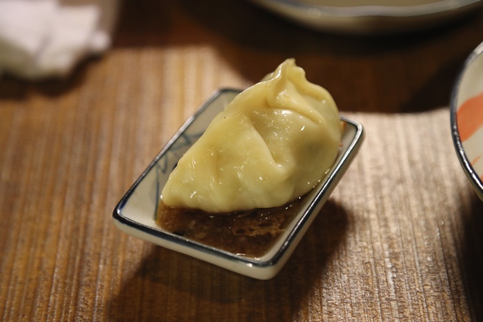 | 最後再點了一份燒餃子,燒餃子的部分要烹調以前,店主同樣問我們比較喜歡哪樣的方式,煎的乾一點還是油一點,這簡直就是完全個人廚師的服務阿,吃燒餃子的時候店主又推薦了我們另一杯清酒搭配,難怪這間店的位子那麼少,因為店主最主要還是希望可以跟客人拉近距離,邊吃邊聊最快樂! |