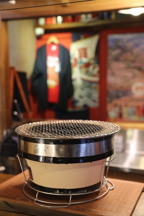| 因為已經預約好了,所以店主馬上就把烤爐拿出來了,最我最愛的木炭舊式烤爐,日本人也很喜歡這類型的烤爐,都覺得燒肉就是要用木炭烤才會美味! |