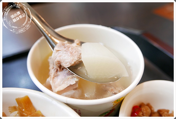 | 推一下寶妹選的蘿蔔排骨湯,湯底味道很濃郁,而且他超級燙的,喝起來比外面的關東煮湯還要夠味XDD,尤其是白蘿蔔已經煮透了,這才是整碗湯的重點阿~~ |