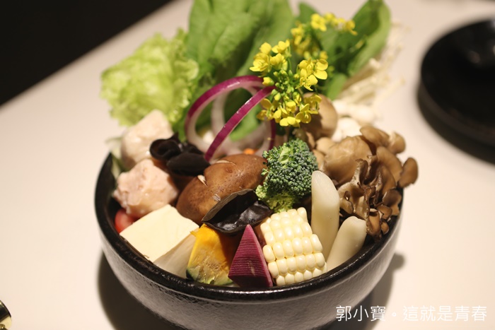 | 菜盤擺的超漂亮的,一整個就是精緻無比,裡面除了蔬菜以外還有丸子等食材,確實還滿豐富的,配色也配得很好,少見用碗缽去當菜盤的,視覺上小了一點,但是夾出來後分量著實不少。 |