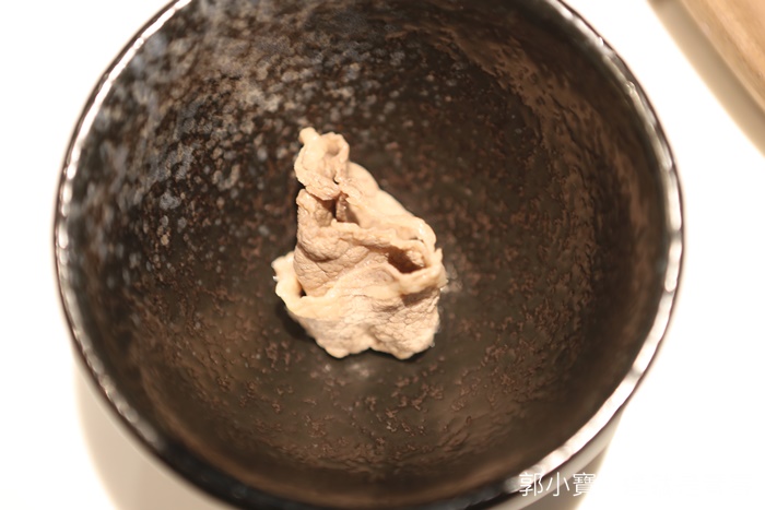 | 涮好的黑豬吃起來相當具有風味,沒有半點豬騷味以外,還有黑豬獨特的香氣,口感也相當的不錯,彈牙中帶點纖維感,宜蘭的葛瑪蘭豬也算是鹿兒島黑豬的血統,但是鄉比起來還是鹿兒島黑豬更勝一籌。 |