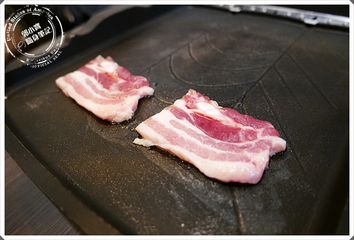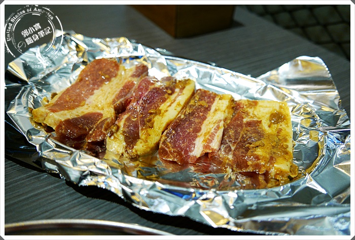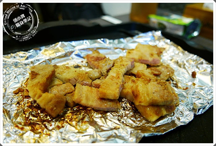 | 先來嘗試厚切豬五花~喜歡她粉嫩的新鮮顏色,桌上都有附上食物剪刀,我們是直接剪成喜歡的大小就下去燒烤... |