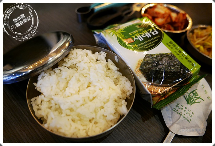 | 有趣的是店家的套餐有配上海苔飯,使用正韓國的韓式海苔,我也不知道為什麼看起來很普通的海苔飯會這麼吸引我! |