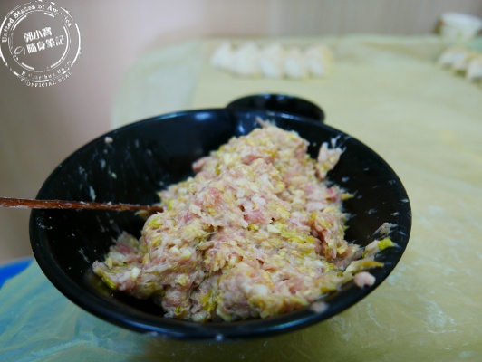 | 水餃現場製作,新鮮看的見,餡料的比例一看就營養滿分。 |