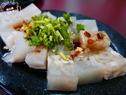 店家推薦的豬皮凍,覺得特別所以點來試試,冰涼的豬皮凍整體Q彈內有整顆花生增加口感層次,補充膠原蛋白外還多了花生香氣,簡單加個醬油就很美味。 |
