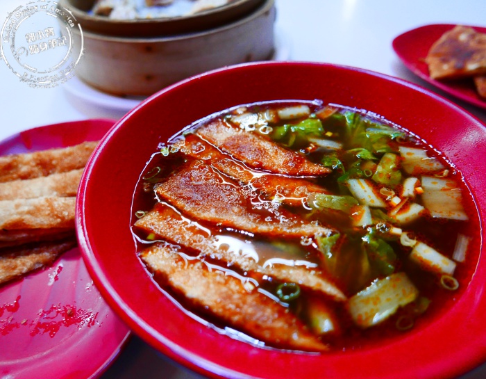 | 再來這吸滿牛肉湯汁的泡餅,別看他薄薄的但依舊有嚼勁,吸滿的牛肉的湯香氣十足,也多了中藥滷汁的鹹香,不禁一片接著一片吃,搭配麵香真的非常順口,令人回味無窮啊。