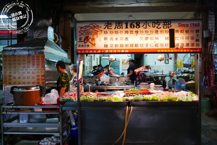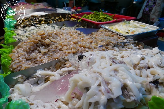 | 走進三民市場幾乎有些攤位都有一樣設計的招牌,三民街美食市集老字號的殊榮,夜晚的燈光讓小攤子多了份溫暖的味道,這很有味道的攤子不會不好找,看到攤位上滿滿的海鮮就是了。 |