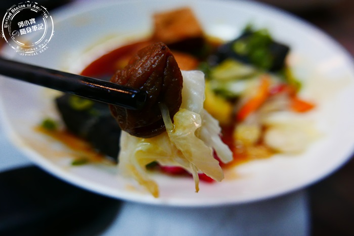 | 他們家的泡菜有點不一樣,加了梅子下去醃製,酸酸的還帶有梅子的甘甜,特別清爽回甘,蔬菜的脆甜為這盤脆皮豆腐加分不少。 |