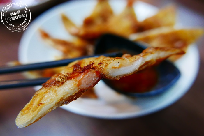 | 這算是噢北編第一次吃到的口感,整片像滿滿花枝漿的月亮蝦餅一樣,超Q非常有嚼勁,裡面吃得到蝦肉塊跟花枝塊,炸過香氣十足,趁熱吃非常好吃。 |