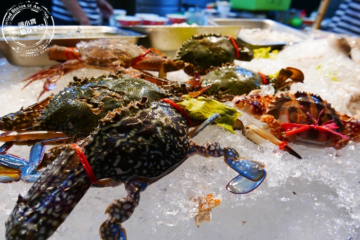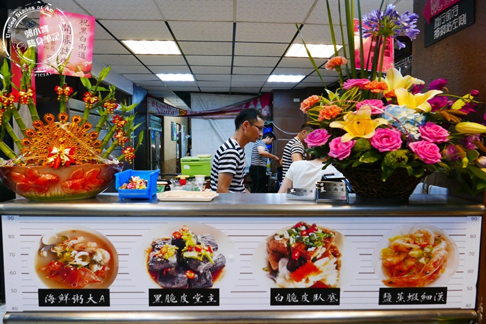 | 攤子上放著一隻隻的螃蟹還有海鮮,像熱炒店的感覺,但店家是賣海鮮粥的唷! |