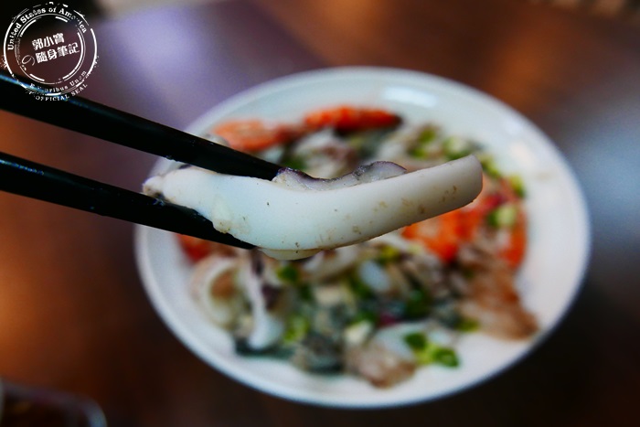 | 看看這花枝這麼厚,一口吃下去超飽口很滿足,整盤清炒因為有大量的蔥跟蒜提味,加上簡單的調味,跟原本海鮮的鮮甜味搭配起來其實味道是很夠的,感覺就很適合配杯啤酒。 |