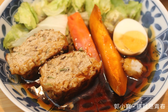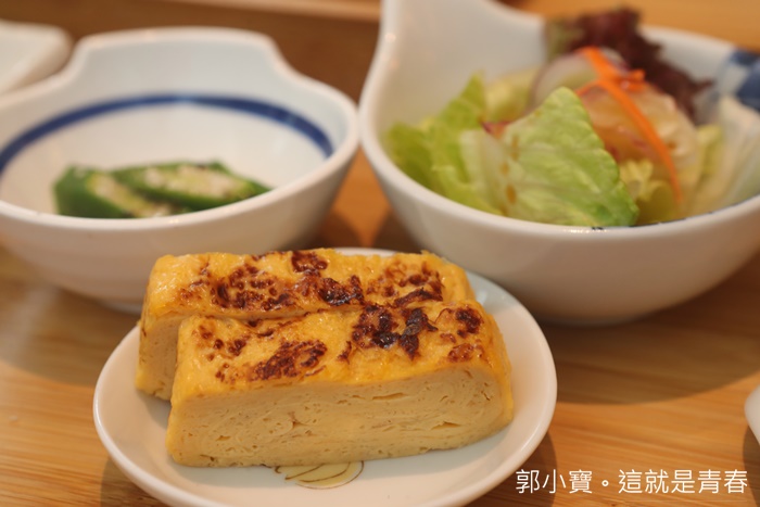 | 配菜有玉子蛋跟沙拉、秋葵,看起來營養滿分的感覺,蛋是我個人還滿害怕秋葵的口感,所以就奉獻給友人了,他倒是很喜歡秋葵的黏稠感。 |