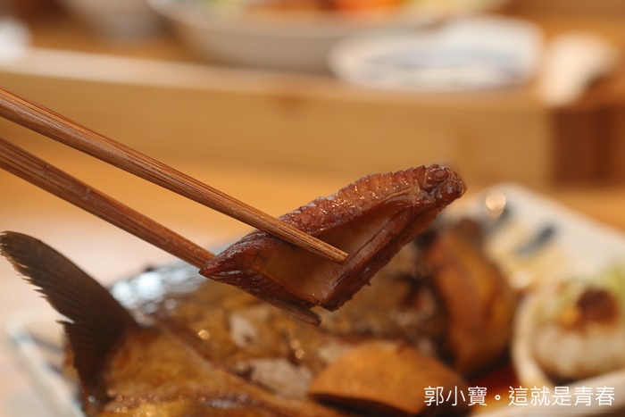 | 從側面看就可以看到這肉有多厚,一點都不輸給魚身體的肉塊,忘了跟大家分享,海鮮定食的部分有鹽烤跟醬燒兩種,但是我可能吃習慣小時候媽媽都搭配醬油烹煮,所以每次吃到醬燒都感覺有媽媽的味道。 |