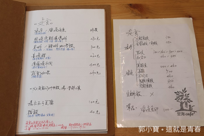 | 菜單是老闆親自手寫的,頗有文清氣息,怎麼看這邊都比較像咖啡店,想不到卻是因為海鮮定食的部分聲名大噪,除了定食以外,他們的咖啡我還滿喜歡的,還有下午茶的甜點也不是蓋的,頗讓我意外餐點豐富度非常的多。 |