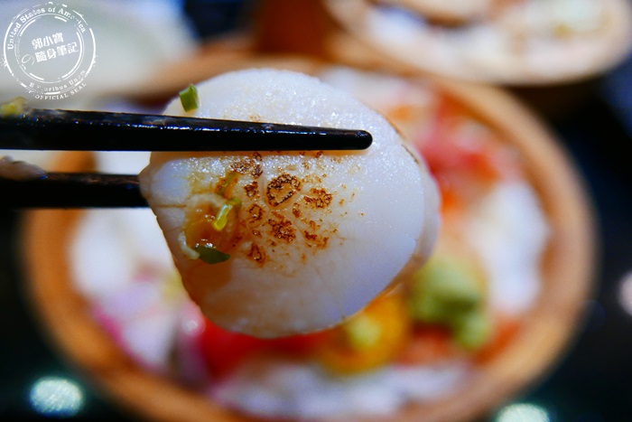 | 超大超厚的進口干貝,海味十足又鮮嫩,外表微微炙燒過多了焦香氣,也吃的到吃干貝一絲絲的口感,厚實帶脆彈海味鮮味足夠,新鮮度爆表一大個在嘴裡超飽口超滿足,水嫩十足新鮮的生食級干貝超讚的。 |