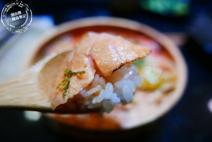 | 炙燒過的鮭魚有比較紮實但還是保有生魚片的軟嫩雙重口感,濃厚的鮭魚香氣加上脂肪香,非常新鮮美味。 |