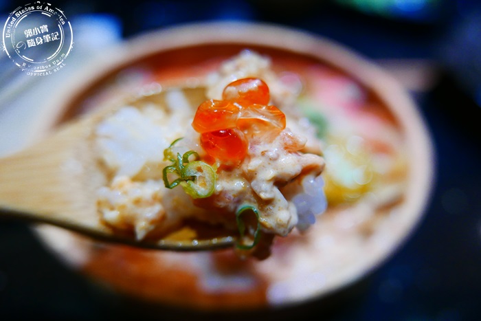 | 一樣有鮭魚生魚片大大的一塊,整晚的配料就是滿滿的鮭魚,生的、炙燒過的、魚肉泥、鮭魚卵,這鮭魚親子丼把鮭魚發揮的淋漓盡致,大碗新鮮實在吃的超滿足超過癮的,喜歡吃生魚片的不要錯過他們家的丼飯。 |