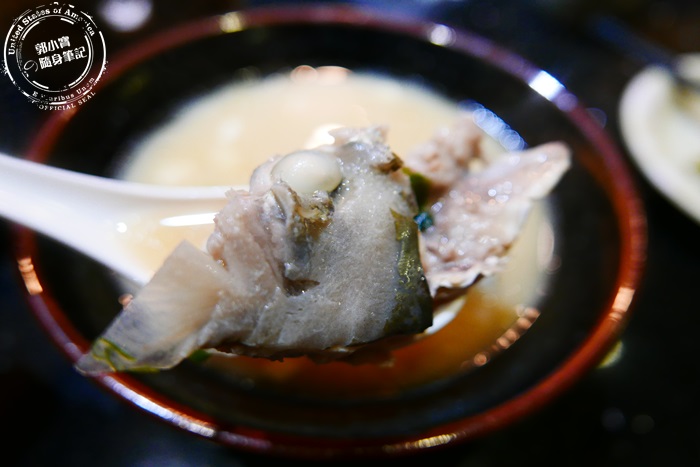 | 大大個鮭魚頭切小塊,跟高湯加入味增一起熬煮,整碗湯超鮮甜超夠味,鹹度很夠海味十足,味增香氣濃郁,魚頭的肉質軟嫩加上魚皮的膠質,鮮嫩好吃啊!料超多超滿足的整個超美味的鮮魚湯非常有水準。 |