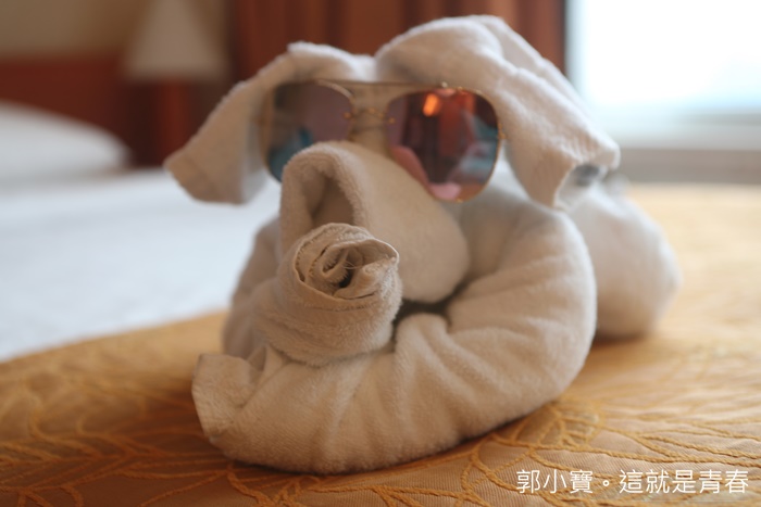 | 某天回房的時候,服務人員還幫我折了一個可愛的小狗,還把我的墨鏡幫她戴上,真的實在有夠可愛的,很有創意耶,房間一天會整理很多次,我常常回房的時候就發現房間整理好了。 |