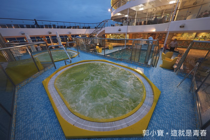 | 露天甲板上除了泳池以外還有按摩大浴缸,這邊真的是整天滿滿的人潮。 |