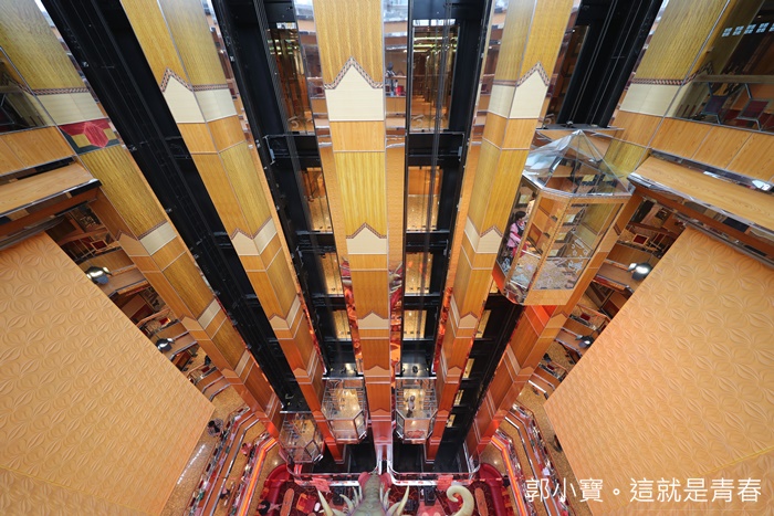 | COSTA歌詩達幸運號大廳還有超美的透明電梯,一整個就是超美的,這邊看起來真的不像在郵輪上,不講的話還以為在哪個購物中心裡面,透明電梯總共有四部。 |