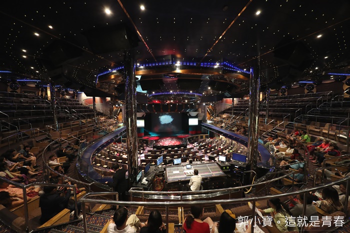 第一眼看到國王大劇場真的有讓我超驚訝的,想不到船內竟然有這樣的表演空間,就像一個室內的體育場一樣,這簡直是開演唱會的規格了,難怪這次可以請到大牌歌星在郵輪上開唱,這規模一點都不輸給賭城的豪華飯店了,國王大劇場每天也都會有表演,有比較重要的表演時船內都會廣播。 |