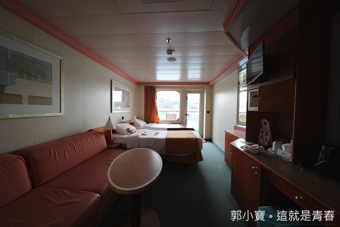 | 到達郵輪最主要的就是房間了,我們這次入住的海景房,其實我也有看過其他的房間,內艙房跟海景房空間大小都沒有太大的分別,就是有沒有對外開放式的陽台而已,基本上會到陽台的時間真的很少,因為幾乎都在船內活動為主。 |
