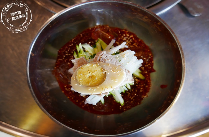 | 韓國冷麵真的有種特殊的魔力,而且炎炎夏日就一定要點來吃,拌勻之後的冷麵被辣醬包覆著,鹹香辣以外還多了甜味,不會太辣味道很剛好,麵條Q勁十足,裡頭放了很多冰塊增加冰涼感,又冰又Q彈的麵條太無敵了。 |