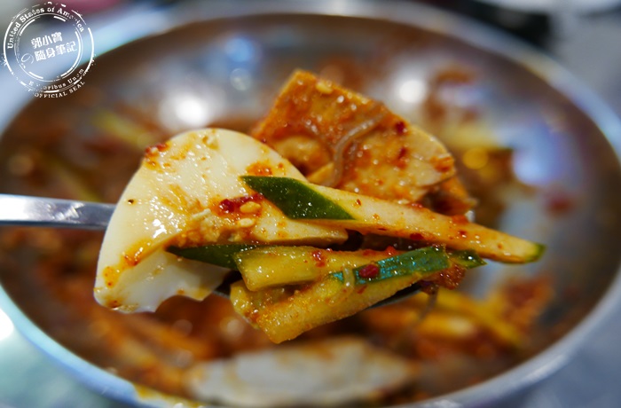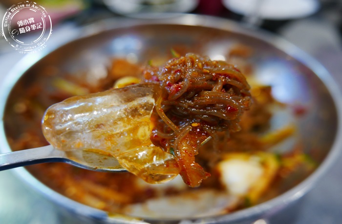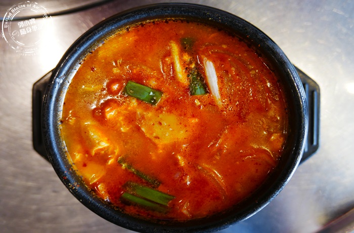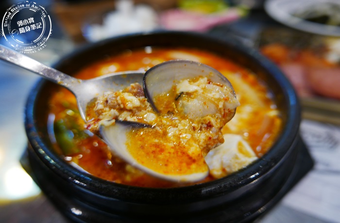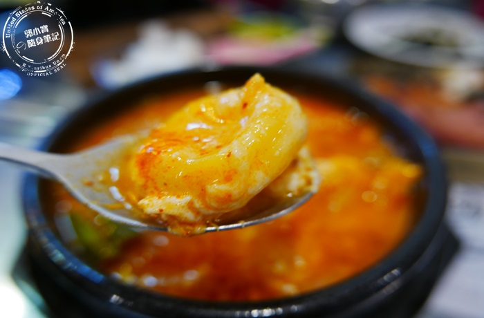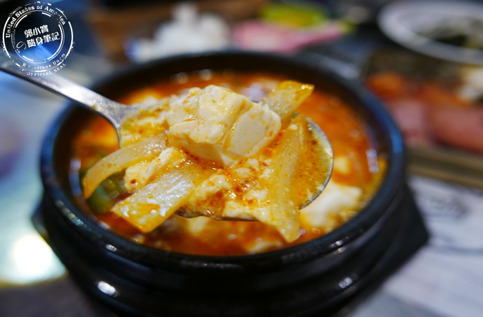 | 嫩豆腐鍋裡面的配料會加顆蛋下去煮,蛋白的部分都一塊一塊的化在鍋裡面,剩下的蛋黃很完整而且呈現半熟狀態,這樣的蛋黃最好吃了,其實豆腐鍋非常營養又可口,石鍋的保溫效果很好,就算上桌沒有馬上喝,溫度還是維持在非常好入口的狀態,重點嫩豆腐鍋在這裡吃很道地又平價,超的滿足又開心啊! |